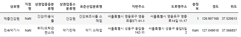 지점은 프렌차이즈임에도 표기가 안된 부분이 있었고, 층은 확인할 길이 없기 때문에 각각 임의로 설정한 것이다.