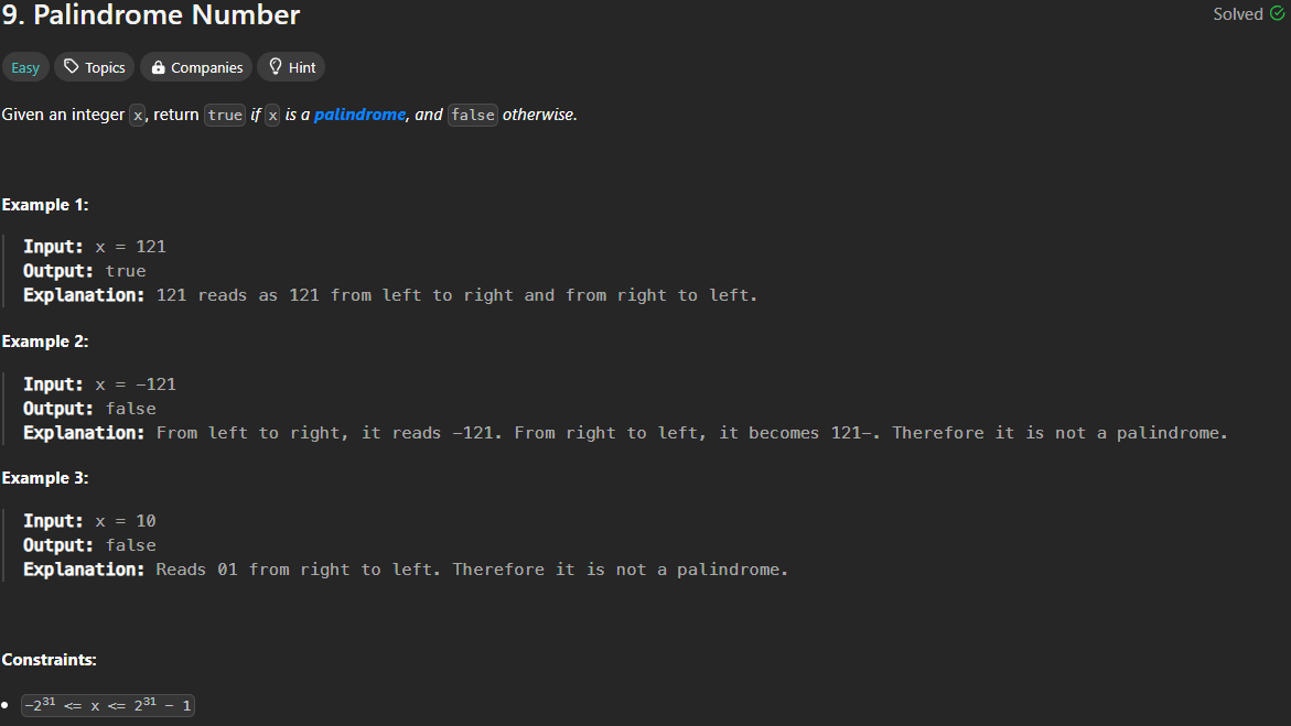 [Leetcode]9.Palindrome Number 본문