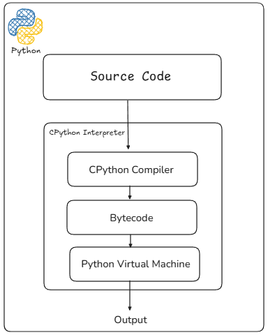 하지만 Compile이 필요하지 않은 언어도 있다. 대표적인 Interpreter 언어 Python이다. 개발자 입장에서 Compile 과정이 필요없다. 소스코드를 한줄씩 읽어 바이트코드로 변환해주고 Python Virtual Machine을 통해 실행 결과를 얻는다. Python에서 Interpretion을 담당하고 있는것이 CPython이다.