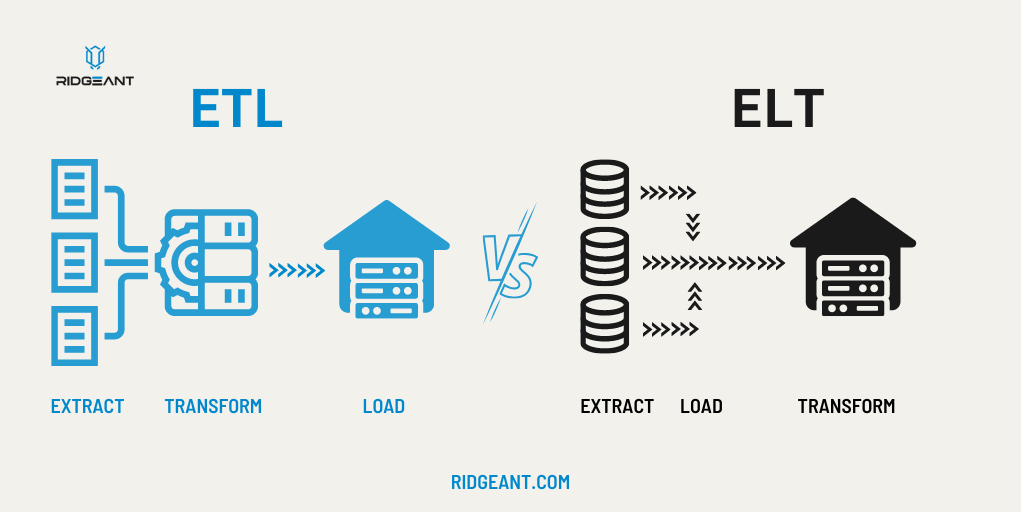 ETL은 데이터 웨어하우스에서 빠질 수 없는 프로세스입니다. 데이터를 원천으로부터 '추출-변형-적재' 하는 일련의 프로세스를 의미하는데, 최근 데이터 웨어하우스는 ETL의 변형 ELT가 생겨났습니다. ELT는 데이터를 추출하여 일부를 원시 상태로 스테이징 영역에 남겨둡니다. 스테이징 영역의 데이터는 외부 시스템이 아닌 내부에서 직접 처리되는데, 데이터 웨어하우스의 뛰어난 계산 능력을 활용하기 위함입니다.